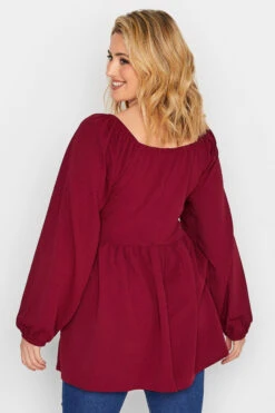 LIMITED COLLECTION Curve Burgundy Red Corset Detail Peplum Top