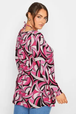 LIMITED COLLECTION Curve Pink Abstract Print Keyhole Tie Swing Top