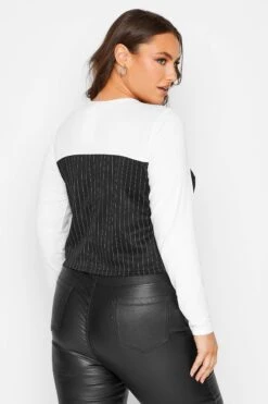 LIMITED COLLECTION Curve White Pinstripe Sweetheart Neck Crop T-Shirt