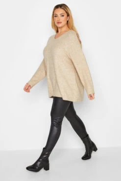 YOURS Curve Beige Pearl Embellished Cut Out Shoulder Soft Touch Top