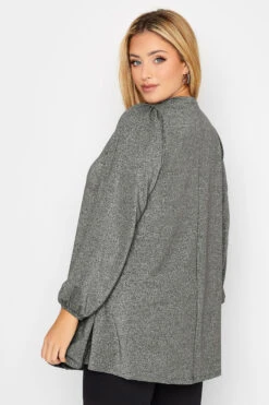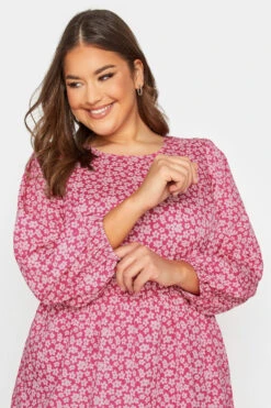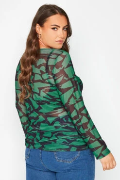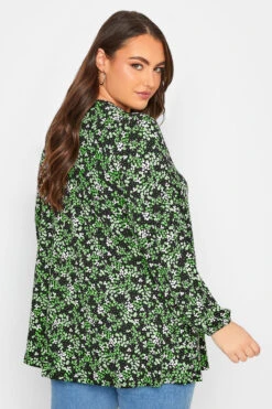 YOURS Curve Green & Black Floral Print Balloon Sleeve Pleat Top