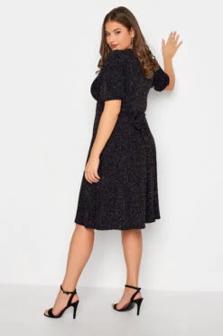 YOURS LONDON Curve Black & Pink Glitter Party Knot Front Dress