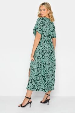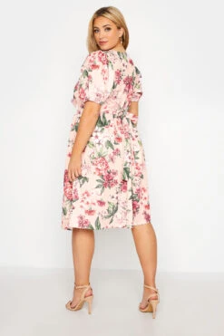 YOURS LONDON Curve Beige Brown Spot Print Pleated Wrap Dress