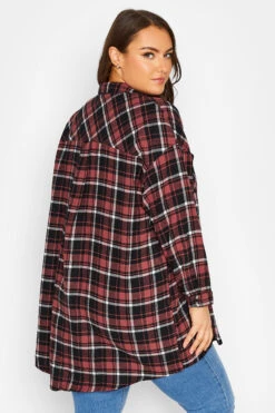 YOURS Curve Red & Black Check Brushed Oversized Boyfriend Shirt