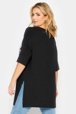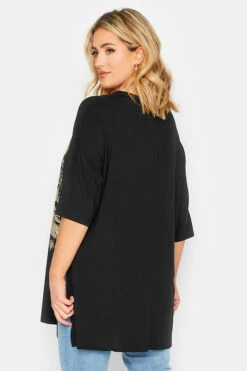YOURS Curve Black & Gold Glitter Tiger Print Split Hem T-Shirt