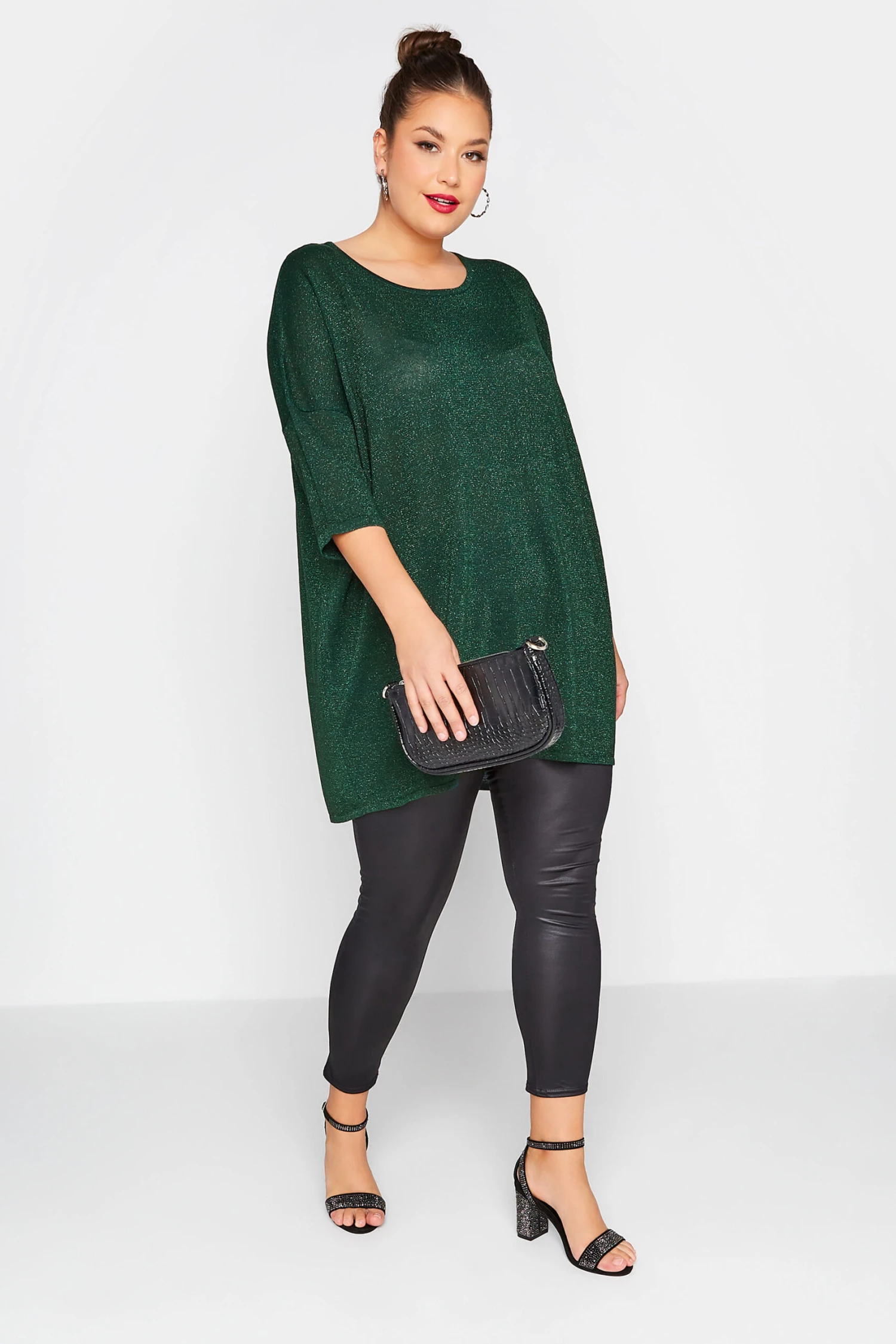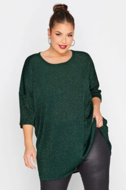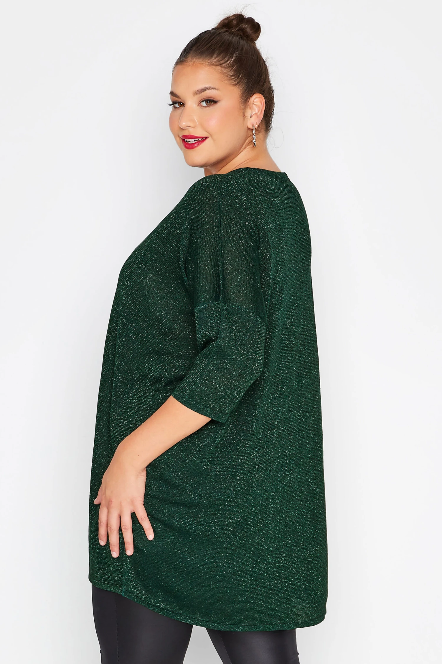 Add some sparkle into your wardrobe with this must-have top. Comfortable in a knitted fabric, it features 3/4 length drop sleeves, a scoop neckline and glitter detail. Style with leather look jeans and heels for an on-trend look that is party ready.
