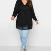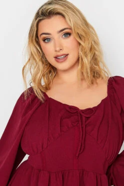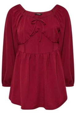 Trending: corset tops! This one from Limited Collection features a square neckline with a tie detail, long balloon sleeves, and a peplum style, complete with a waist-cinching corset bodice. Style with jeans and heels for an evening look you can wear with confidence.