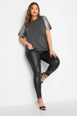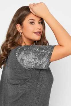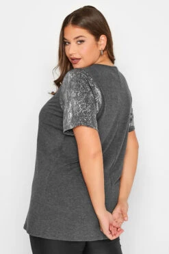 Refresh your t-shirt collection with this foil top from Limited Collection. Made from a stretch jersey fabric, it features short sleeves, a scoop neckline with snake print sleeves. Pair with coated jeans and heels for a smart casual outfit.