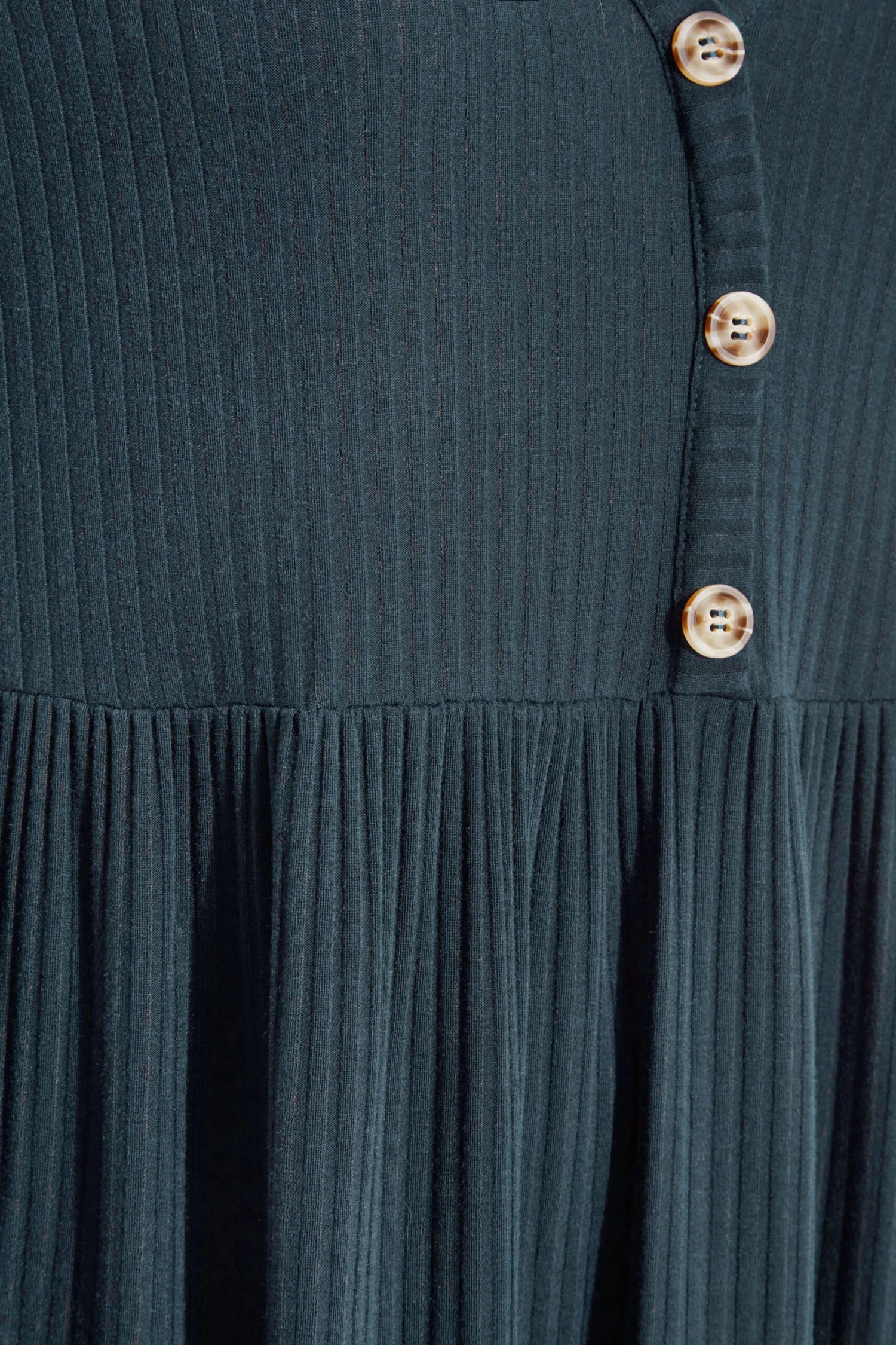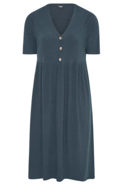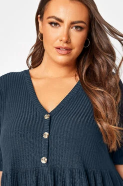 The perfect casual piece. This Limited Collection curve midi dress features short sleeves and a v-neckline with button details, finished in a flattering peplum style. Slip-on with trainers and a denim jacket for chic everyday styling.
