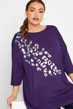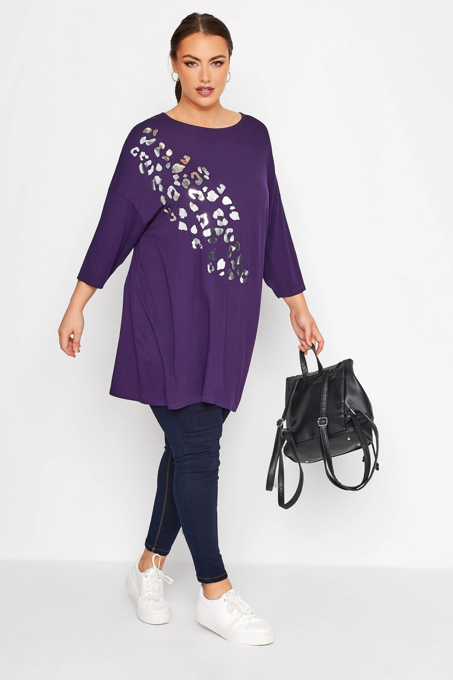Amp up your prints collection with this new-in top exclusive to the Limited Collection. Made in a soft jersey fabric, it features a scoop neckline, 3/4 length grown-on sleeves, and a foil animal print completed in an oversized fit. Partner with jeans and chunky boots for a stylish look.