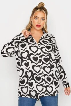 Add some retro prints to your collection with this plus size shirt from Limited Collection. Made from a soft woven fabric, it features long sleeves, a chest pocket, a classic collar and button through fastenings with an all-over retro heart print design. Pair with jeans and sandals for a day-to-night outfit.