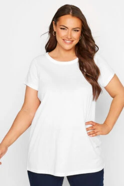 Refresh your basics with this 3 pack of plus size t-shirts. Made from a comfortable jersey fabric, they feature short sleeves and a scoop neckline. Pair with jeans and trainers for a casual, off-duty outfit.