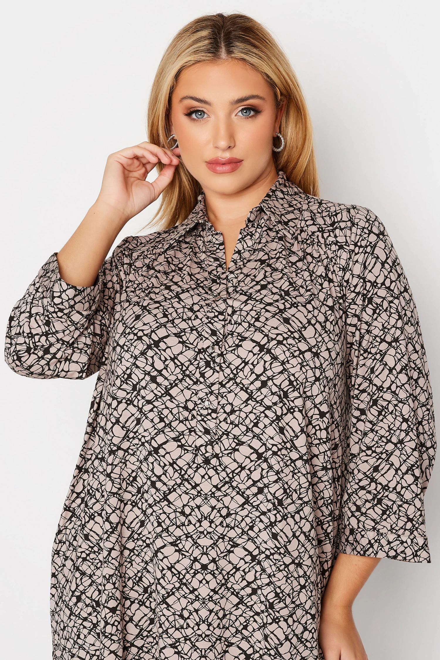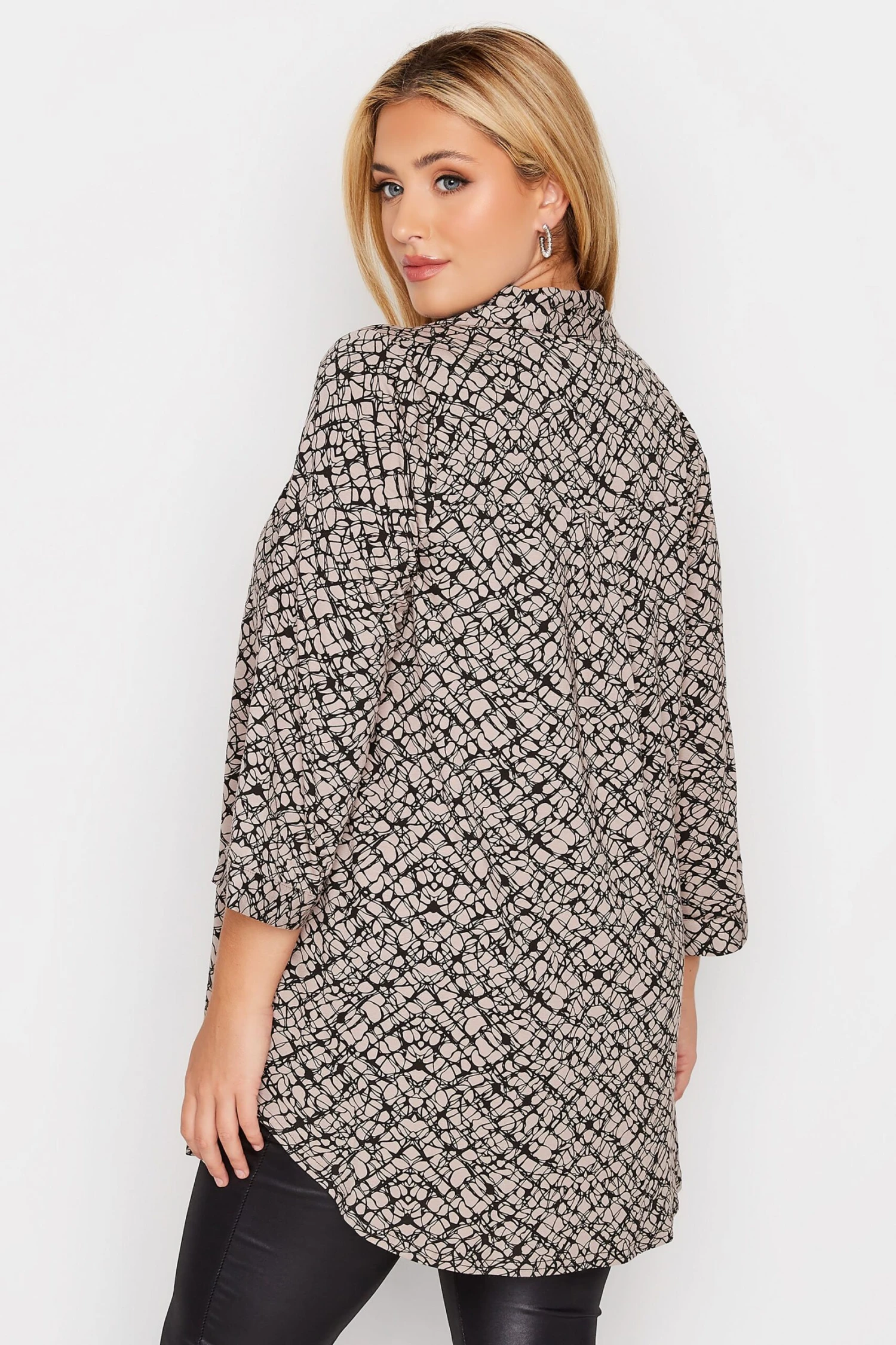 Update your workwear with this plus size printed shirt. Made from a comfortable jersey fabric, it features long sleeves, a half-placket, and an abstract design. Style with leather trousers and pink heels for a look you can rely on.