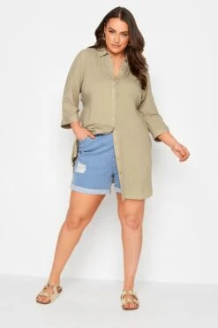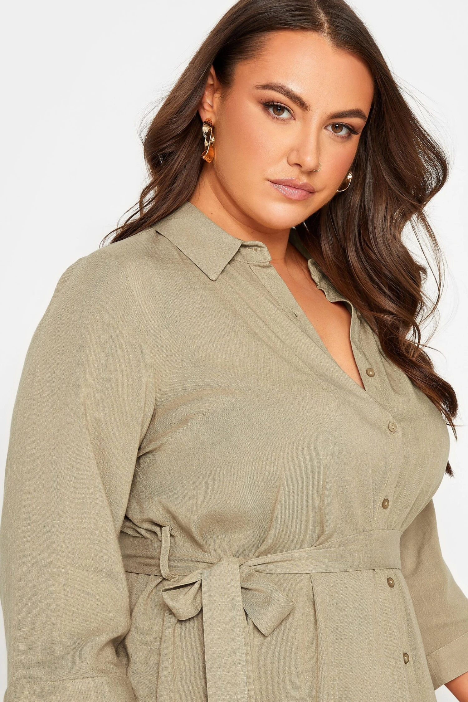 This plus size tunic shirt is a summer staple. Featuring a flattering tie waist belt and 3/4 length sleeves, it is finished with a classic collar, button fastenings, and a dipped hem. Style with shorts and trainers for a summer look you’ll wear on repeat.