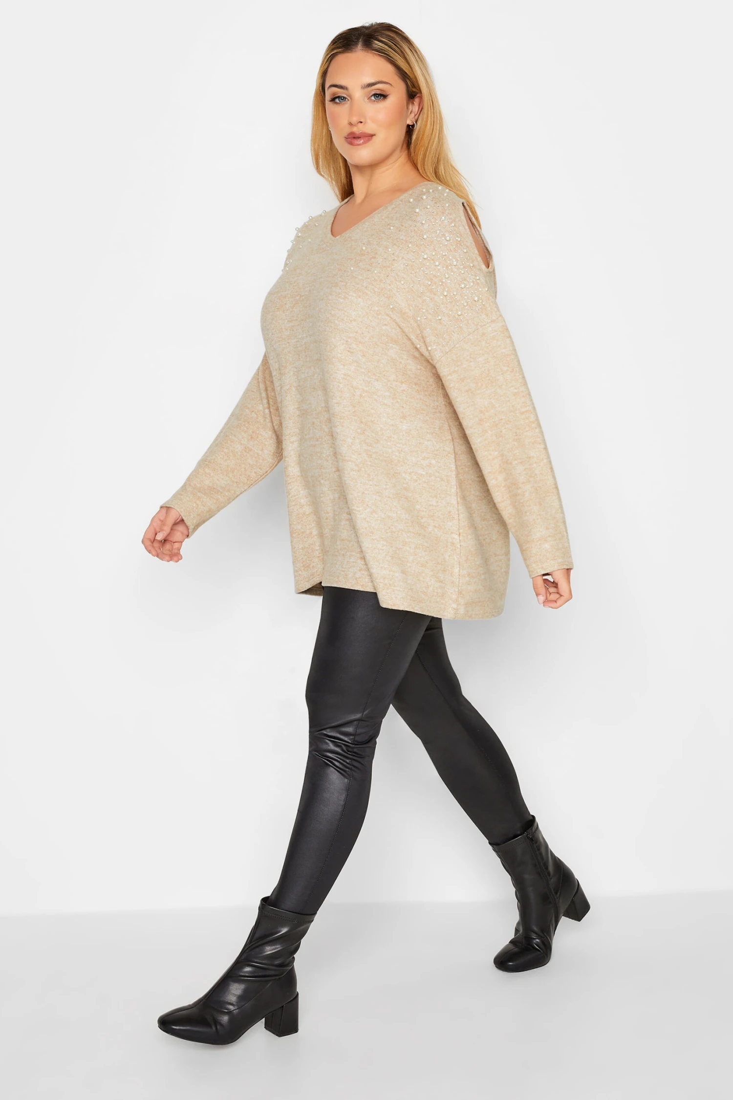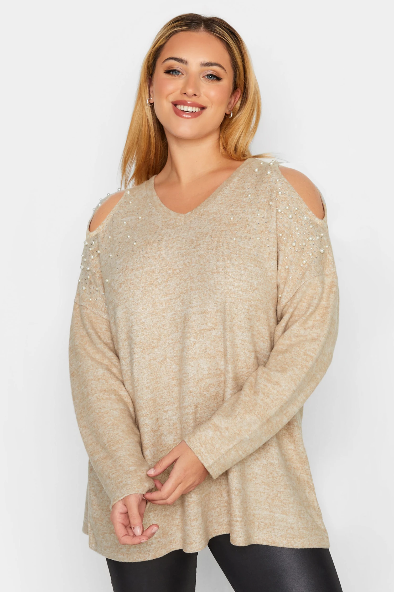 This top has it all. And more. Made from a soft jersey fabric, this top features a pearl detail, a long sleeve, a v-neck, and a pearl embellished. Style with black leather leggings and boots for an easy & fashionable everyday look!