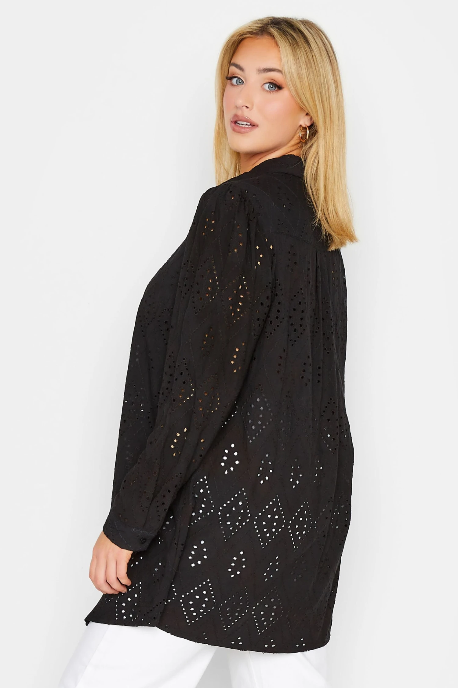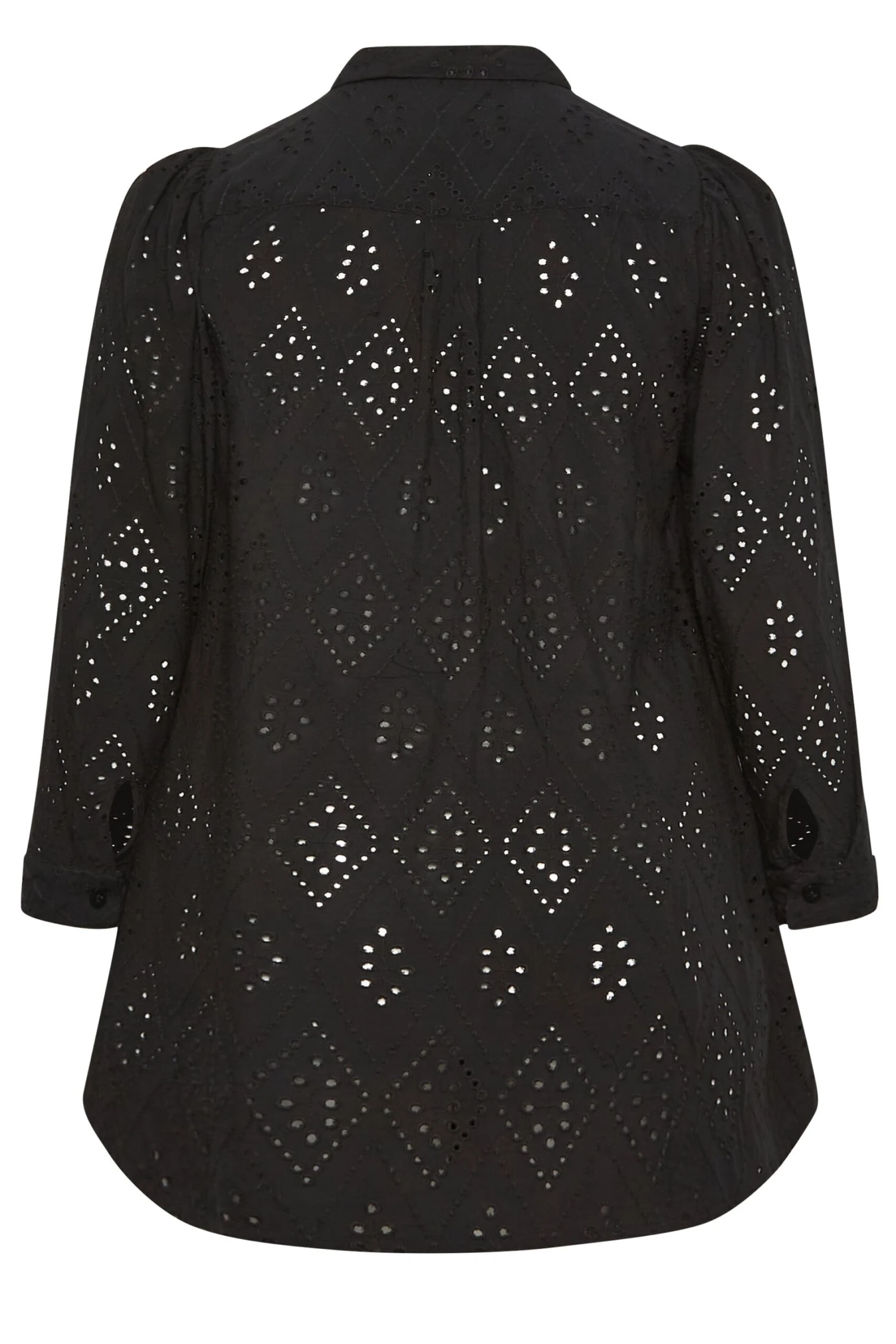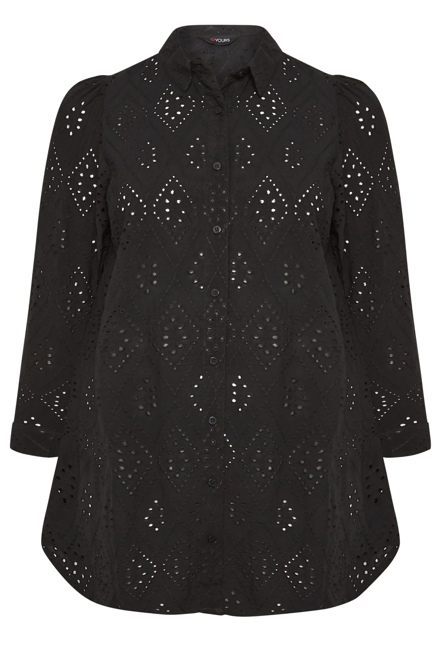Need a holiday? So does this new-in plus size broderie shirt. Made from a comfortable woven fabric, it features long sleeves, a classic collar and button-through fastenings in a broderie anglaise design. Style over a cami top with shorts to complete the look.