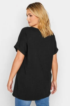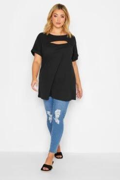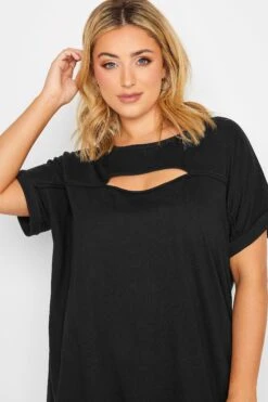 Basics don’t have to be boring. This new-in plus size t-shirt made from 100% cotton features short sleeves, a scoop neckline, and a cut-out detail. Simply style with jeans and trainers for a casual, off-duty outfit.