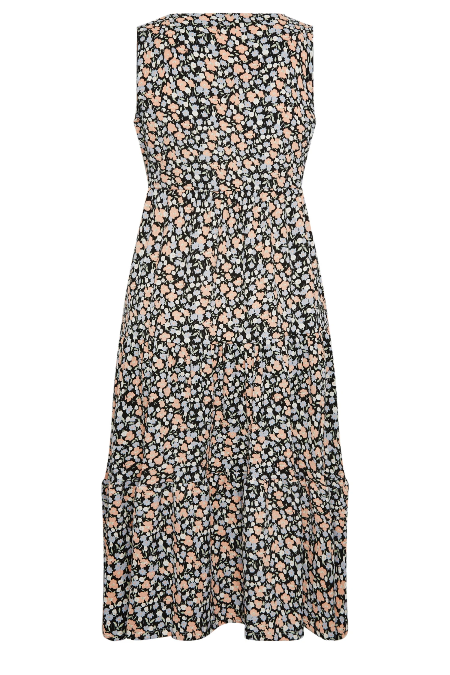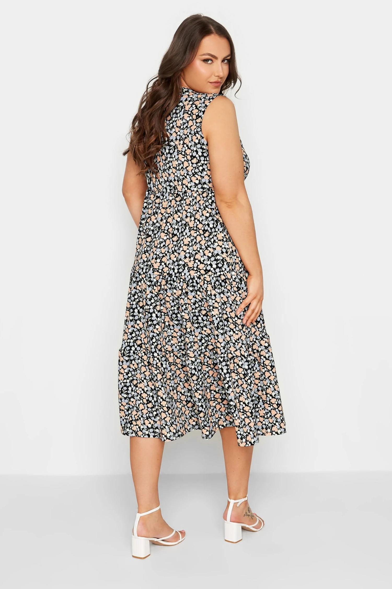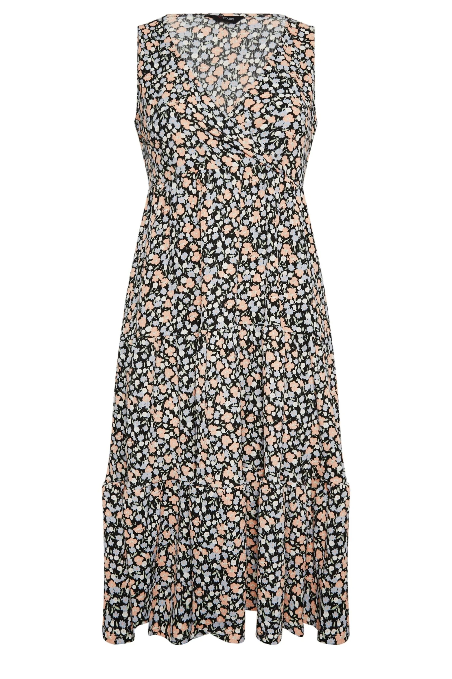 Get occasion-ready with this must-have plus size midi dress. Designed in a floral print, it features a wrap v-neckline and sleeveless design, finished in a midi smock style. Heels and a bag complete this pretty summer look.