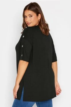 YOURS Curve Black Eyelet Detail Oversized T-Shirt