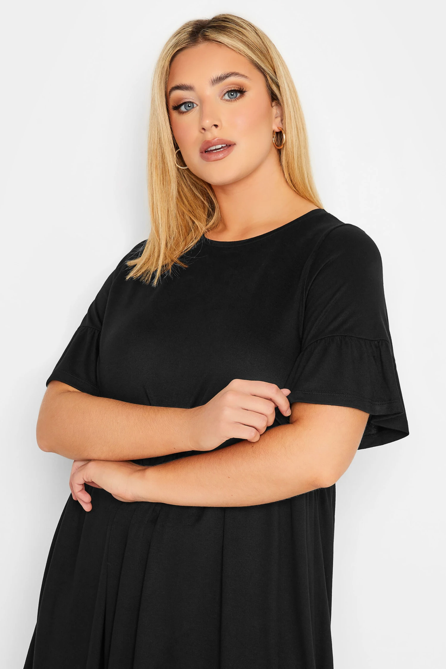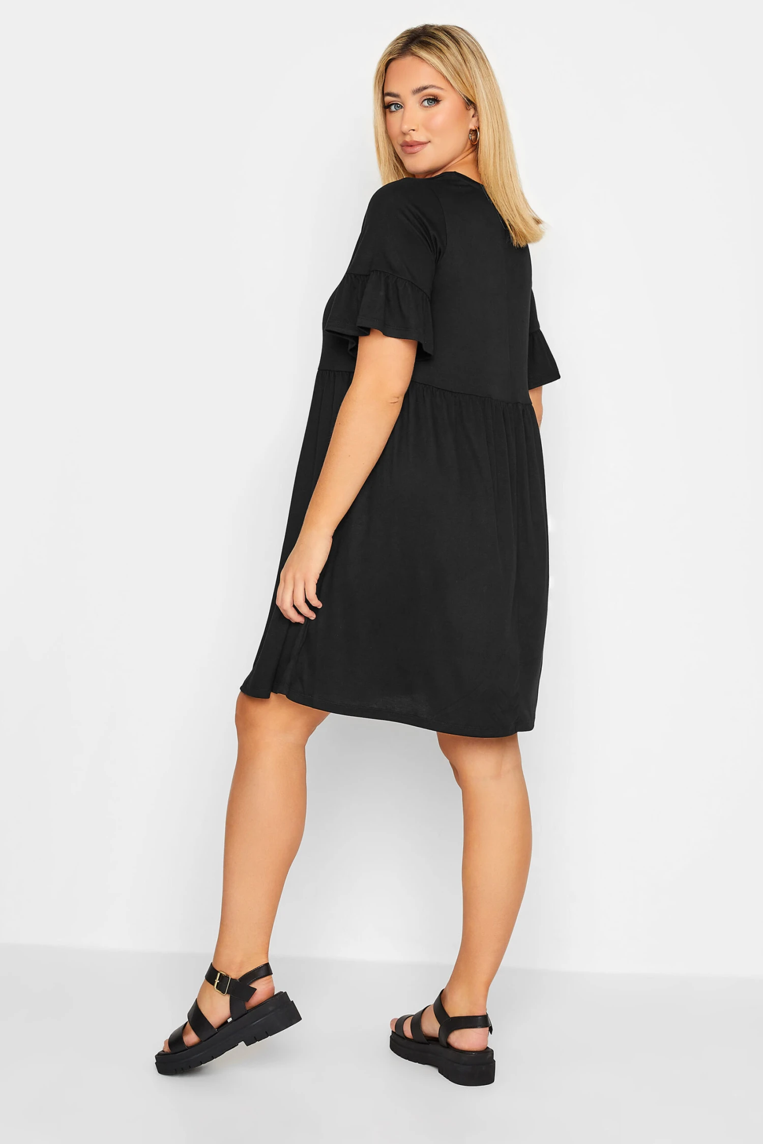 In need of a wardrobe refresh? Look no further than this must-have dress. Made from a comfortable jersey fabric, it features short frill sleeves with a scoop neckline and finishes in a smock style. Team with trainers or dress it up with heels for an effortless look that you can wear with confidence.
