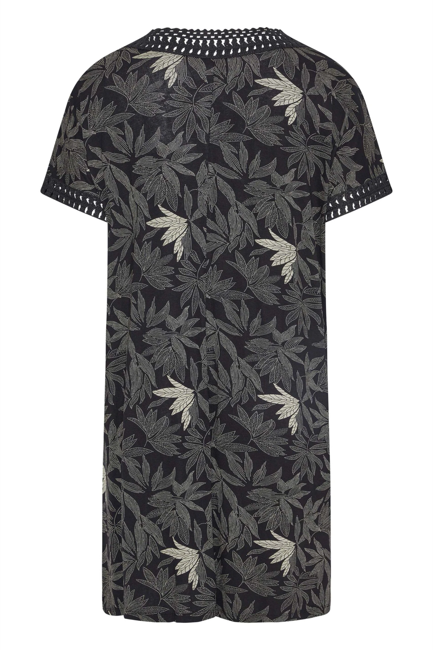 Add some print to your collection with this leaf print tunic dress. Made from a soft knit fabric, it features short sleeves, a v-neckline, contrast trim detail and is complete at a midi length. Style with your favourite heels and shoulder bag for an evening outfit.