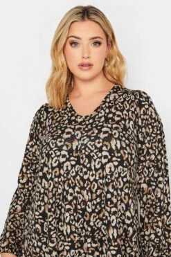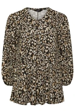 Make some room in your wardrobe for this new-in pleat front top. Made from a comfortable jersey fabric, it features an animal print with a v-neckline and long balloon sleeves. Team with denim for a fuss-free weekend look.