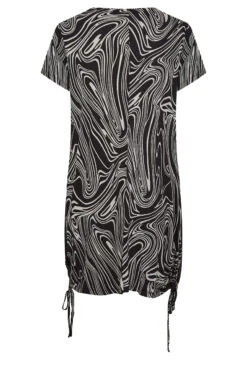 Introduce this marble print dress into your new season collection. Made from a comfortable jersey fabric, it features a mesh front with a drawstring tie side and short sleeves. Pair with heels for a look that is perfect for your next social occasion.