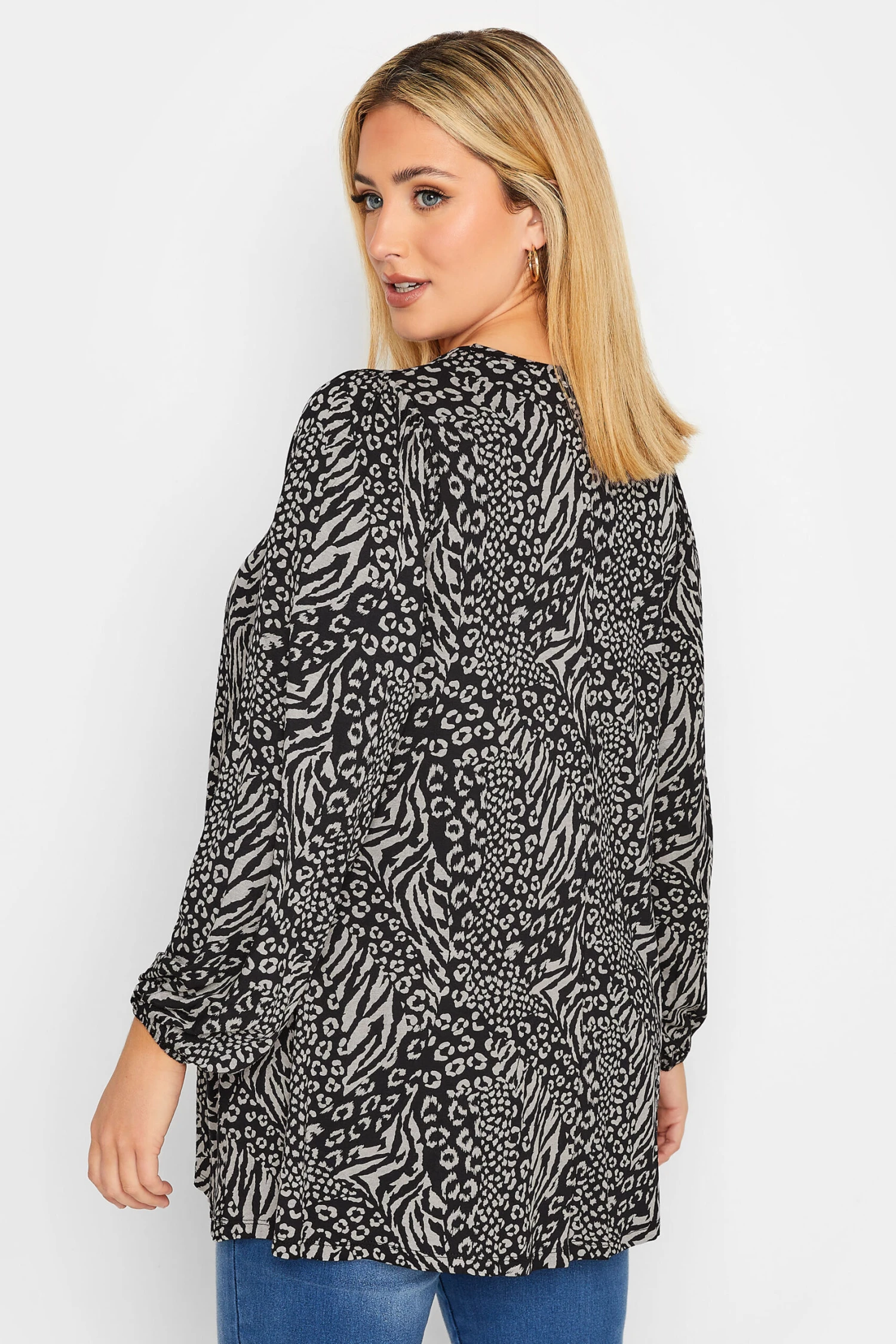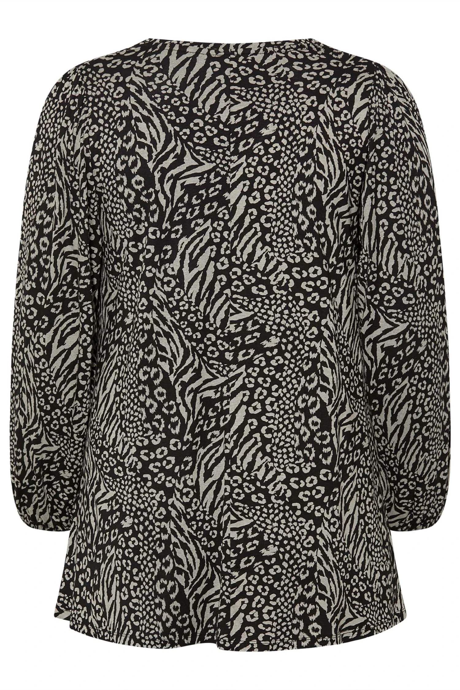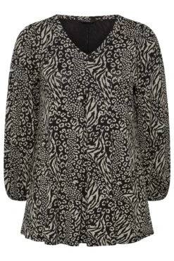 Introduce this pleat front top into your weekend wardrobe. Made from a comfortable jersey fabric, it features a mixed animal print with long sleeves and a v-neckline. Complete the look with jeans and boots for a look that is perfect to thrown-on-and-go this season.