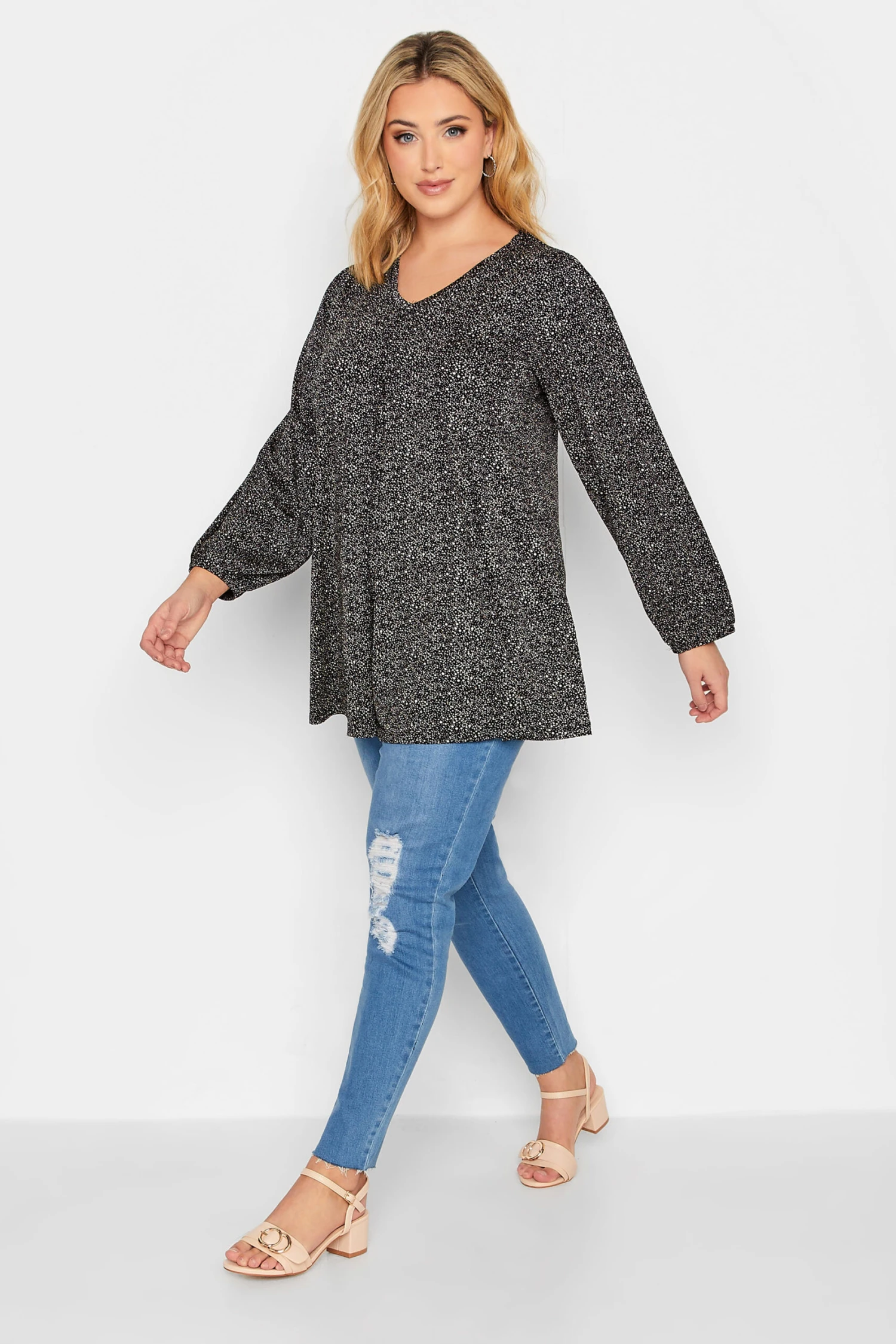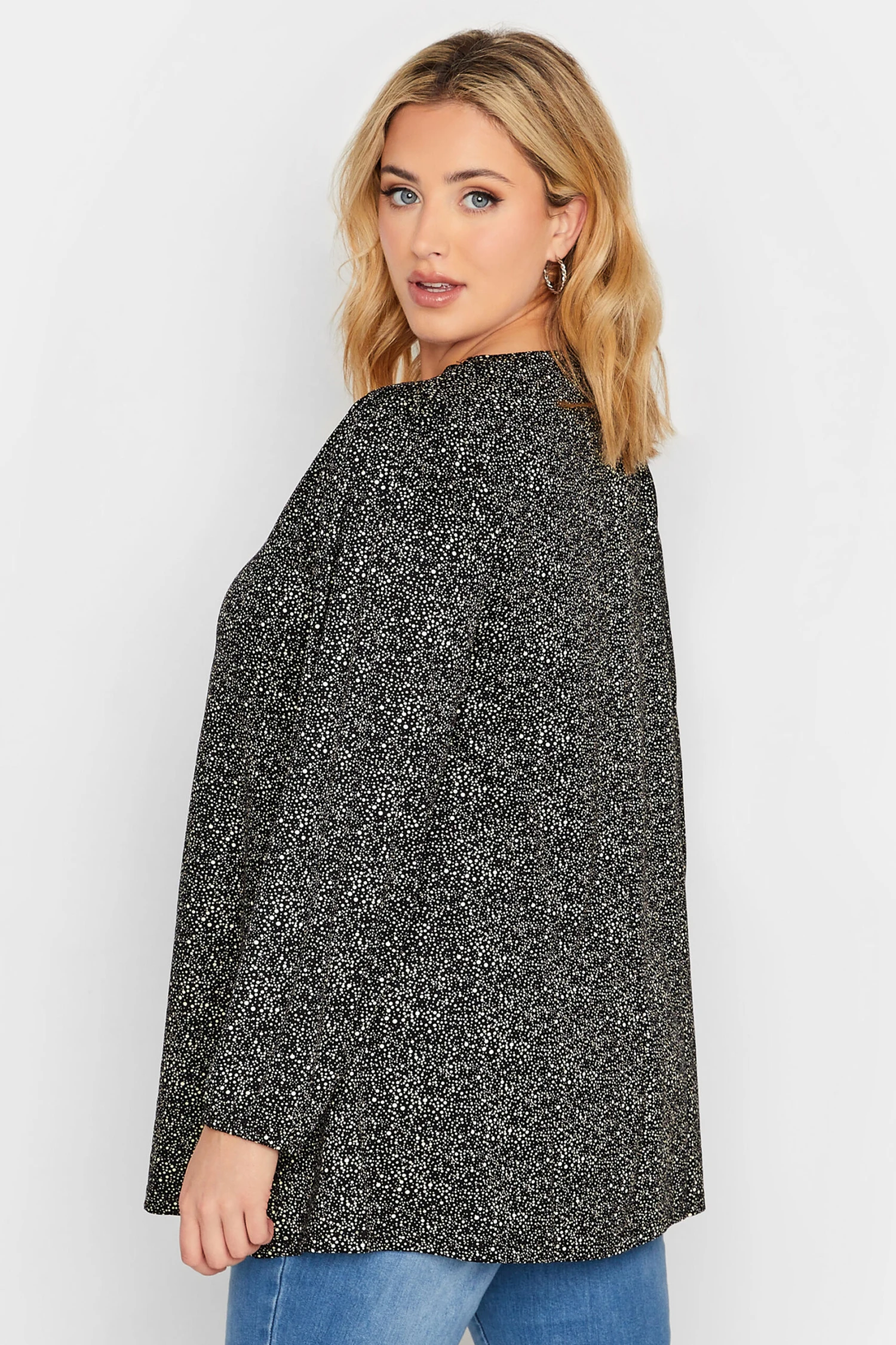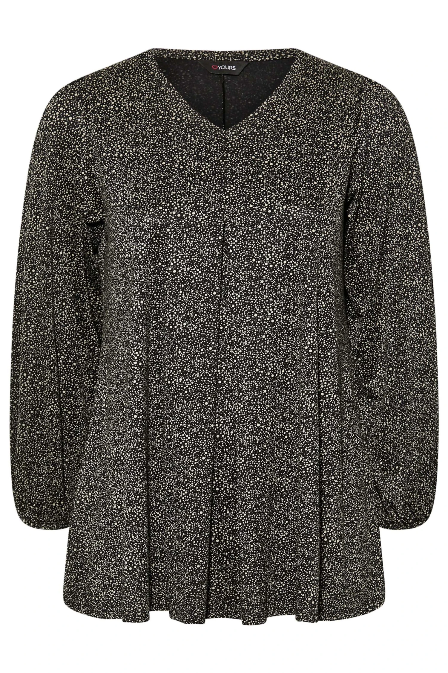 Introduce this pleat front top into your weekend wardrobe. Made from a comfortable jersey fabric, it features a spot print with long sleeves and a v-neckline. Complete the look with jeans and boots for a look that is perfect to thrown-on-and-go this season.