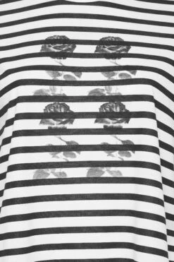This new-in printed t-shirt is the perfect option for your casual weekend plans. Made from a comfortable jersey fabric, it features a stripe pattern with a rose print and short sleeves. Team with jeans and trainers for an effortless off-duty look that you can wear with confidence.