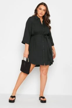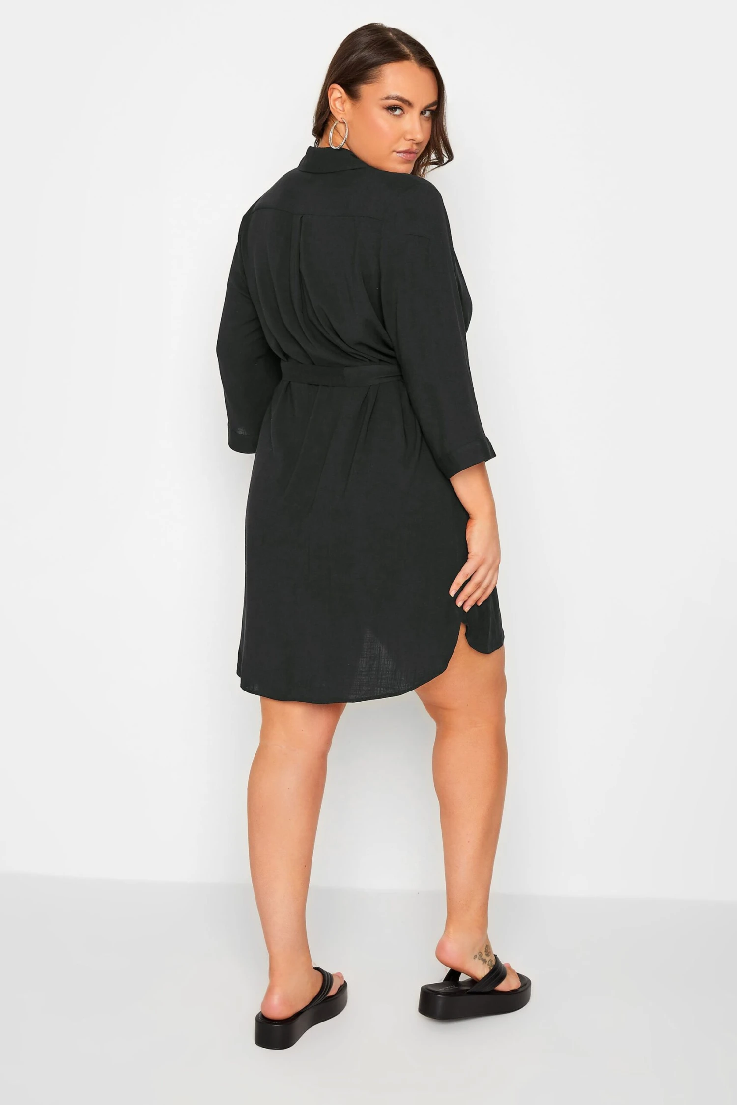 This plus size tunic shirt is a summer staple. Featuring a flattering tie waist belt and 3/4 length sleeves, it is finished with a classic collar, button fastenings, and a dipped hem. Style with shorts and trainers for a summer look you’ll wear on repeat.