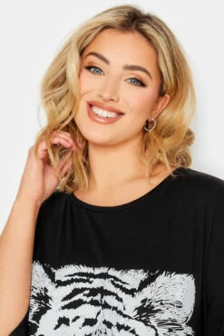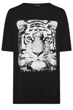 Update your casual collection with the new-in black t-shirt. This tee is made from a soft jersey fabric with a graphic tiger print, 3/4 length sleeves, and a crew neckline. Style with jeans and trainers for an easy on-the-go look.