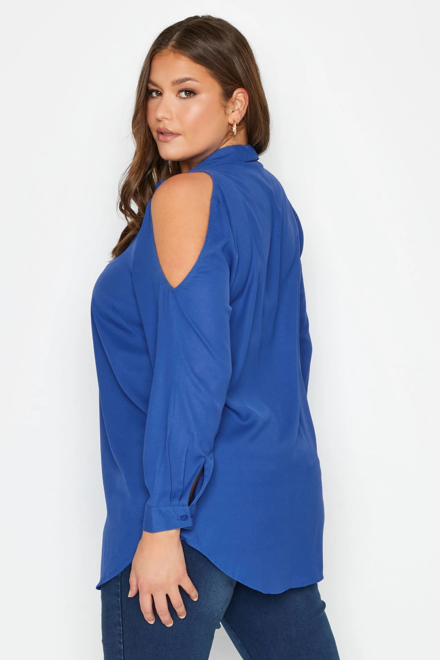 Update your wardrobe with this plus size cold shoulder shirt. Made from a soft woven fabric, it features long sleeves, button through fastenings with a classic collar and is in a cold shoulder style. Pair with your favourite jeans and heels for your next night out with the girls.