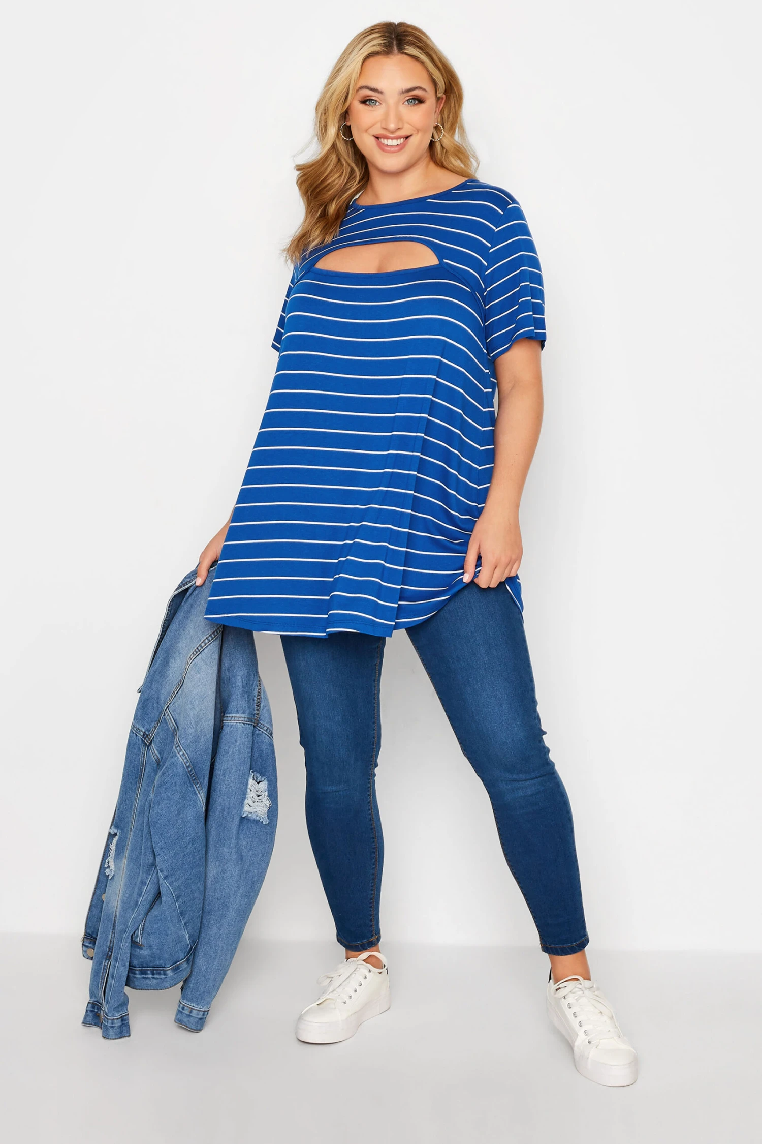 Play with prints with our new in cut out top. Made in a soft jersey fabric, this top is detailed with a chest cut out and short sleeves. Pair with jeans and trainers for a weekend look.