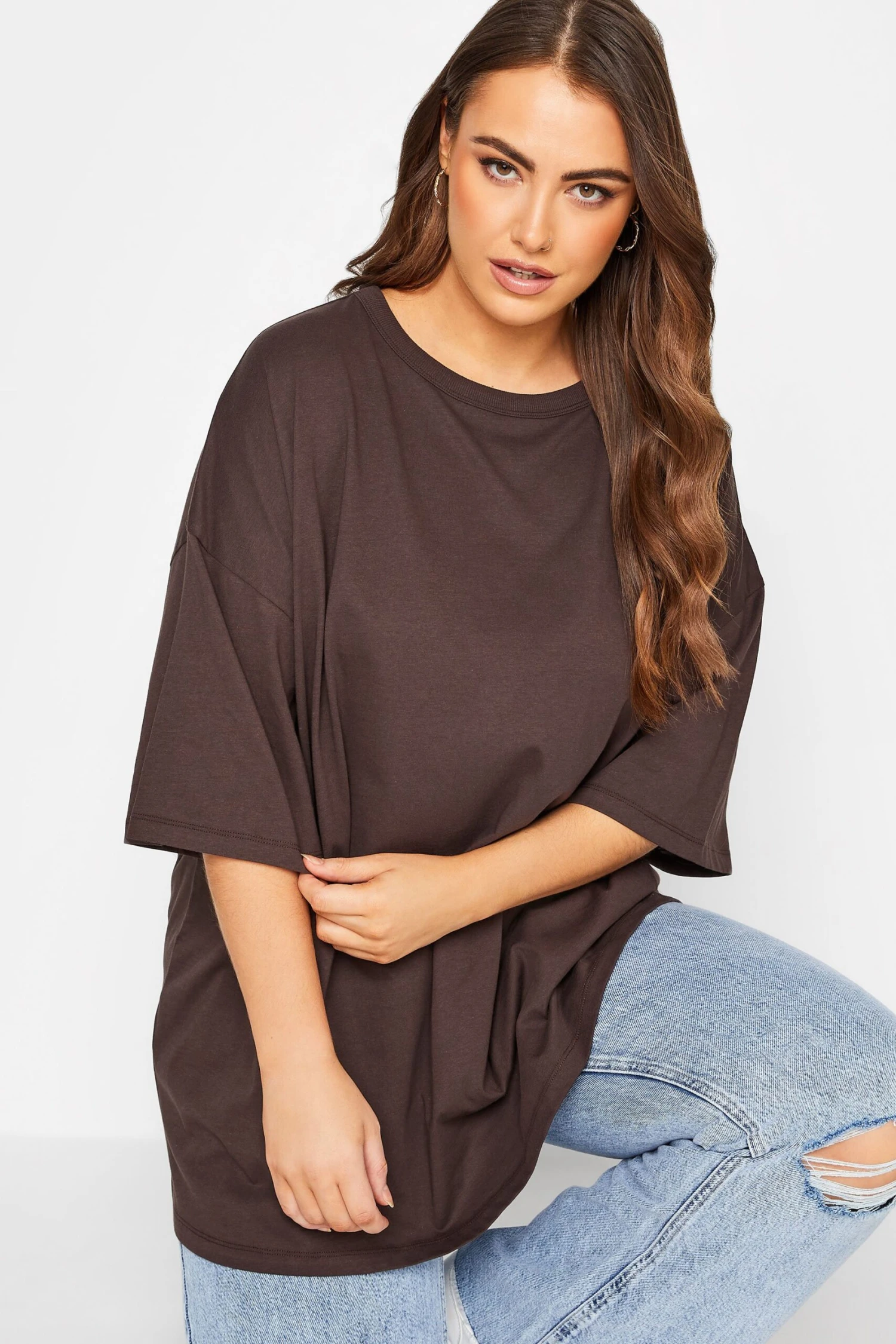 YOURS Curve Chocolate Brown Oversized Boxy T-Shirt