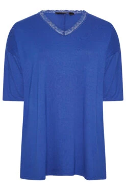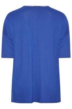 YOURS Curve Cobalt Blue Lace Neck T-Shirt
