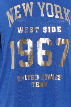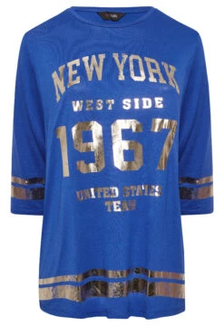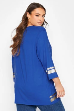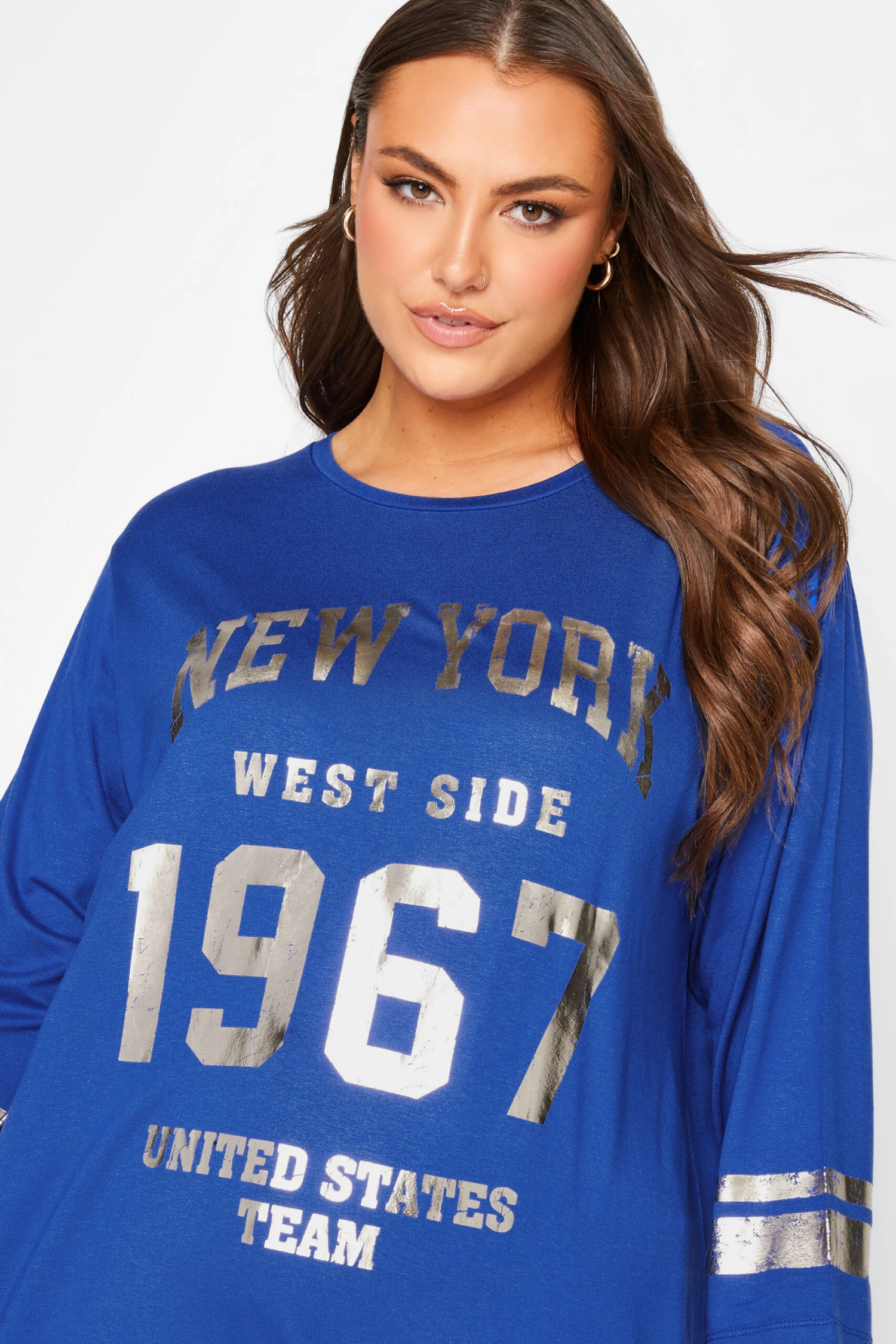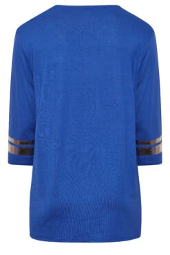 YOURS Curve Cobalt Blue Metallic Varsity T-Shirt