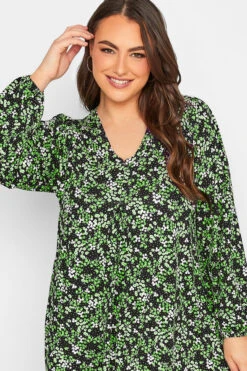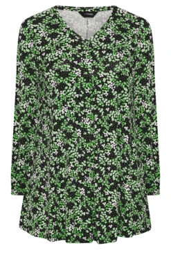 A must have top! Made from a comfortable jersey fabric, this top features a pleated front, short sleeves, a floral pattern and a v-neckline, complete in a swing style. Style with leather trousers and black heels for a glam going-out outfit.