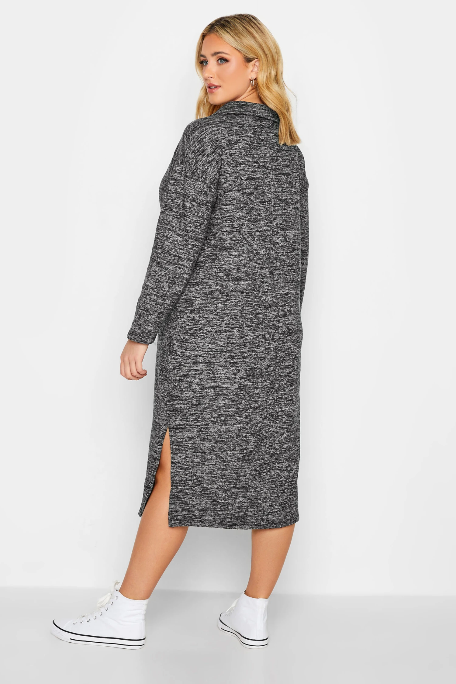 This soft-handle midi jumper dress is set to be a go-to for everyday wear this season. Made from a soft knitted fabric, it features long sleeves with an open collar and a side split hem. Style with boots for the perfect autumnal look!