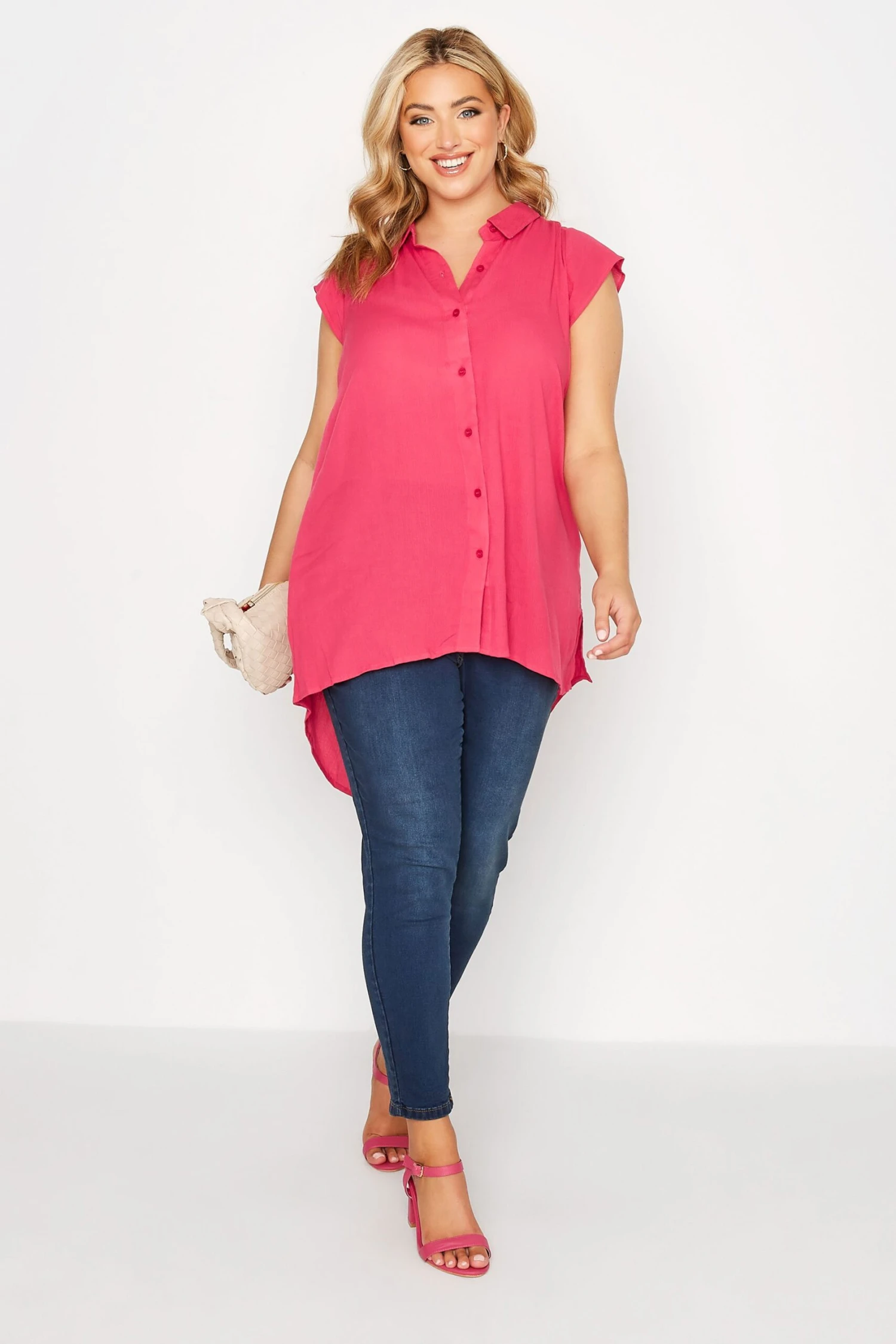 A versatile piece your wardrobe can’t live without! This plus size shirt features a dipped hem and short cap sleeves with a classic collar and button through fastenings. Wear with trousers and loafers for everyday wear, or opt for heels in the evening.
