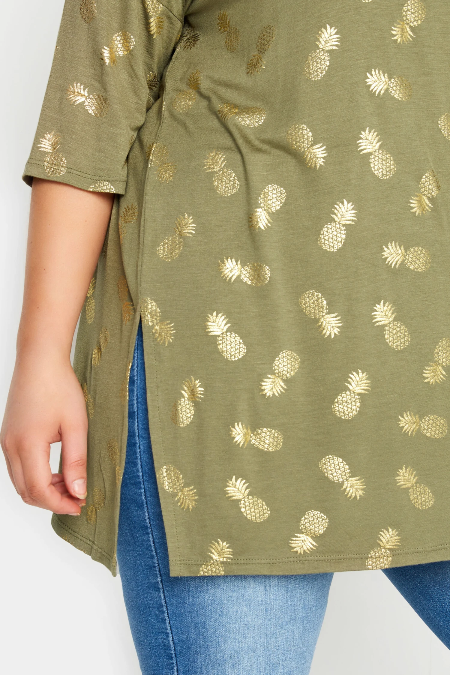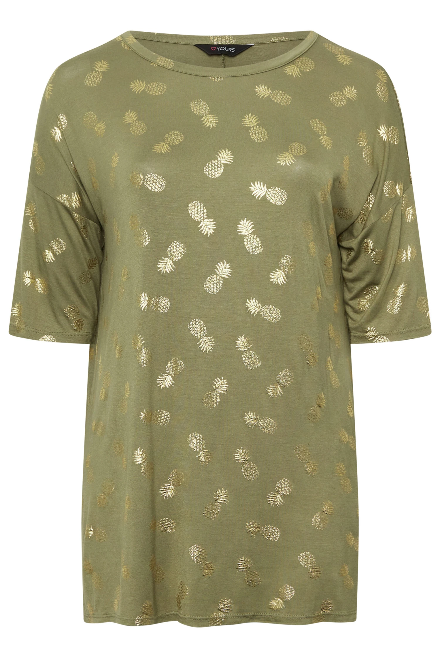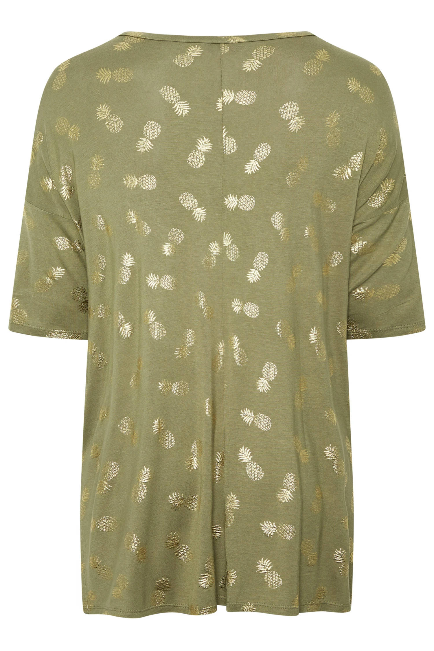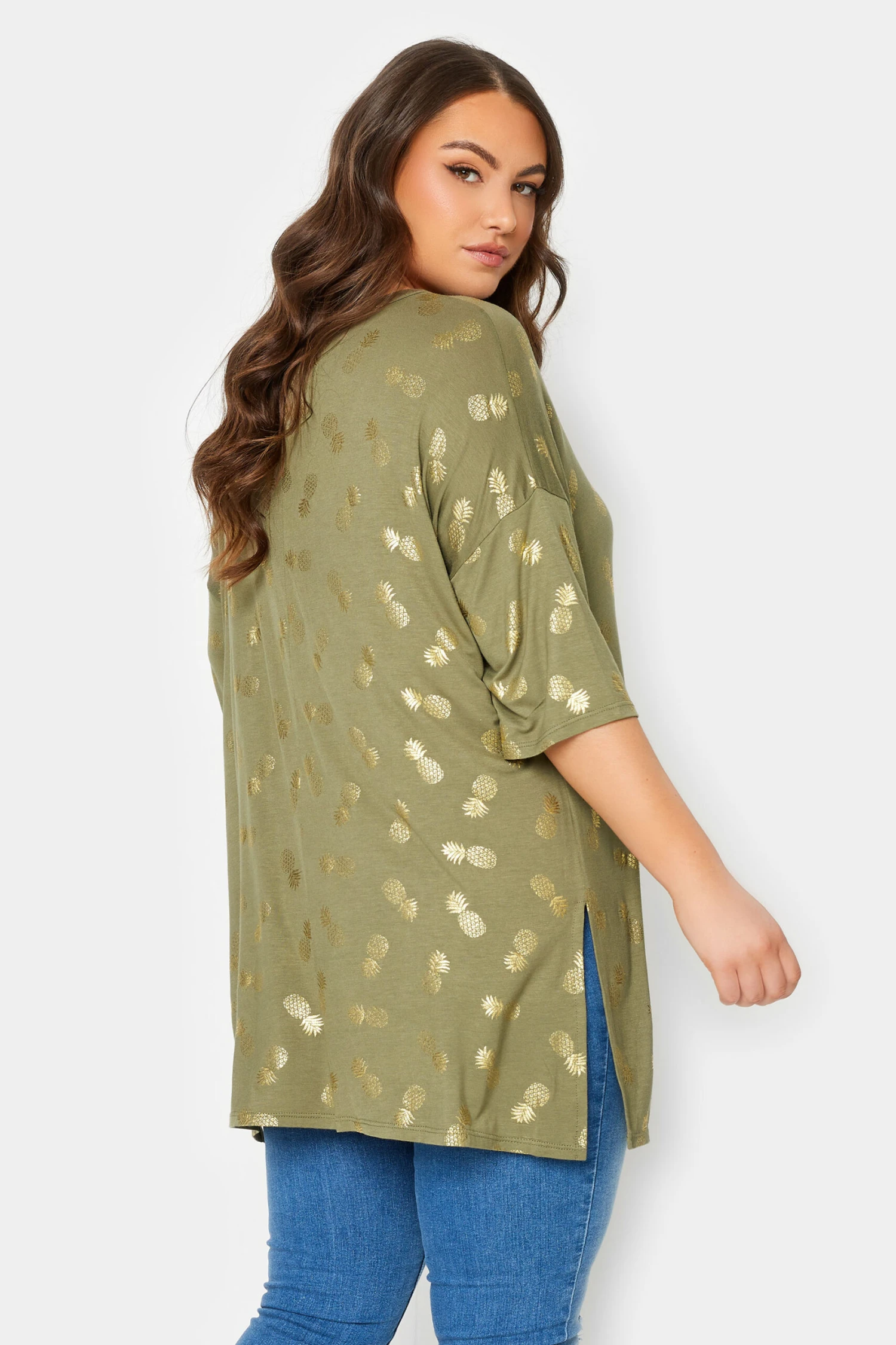 Amp up your prints collection with this new-in t-shirt. Made in a soft jersey fabric, it features a scoop neckline, short grown-on sleeves, and a foil pineapple print. Partner with jeans and trainers for a casual look.