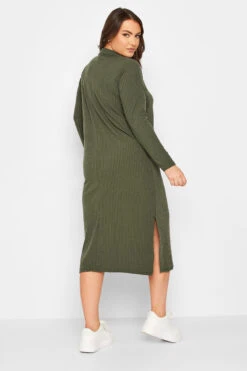 As easy as it looks. Slip-on and go. Made from a soft knitted fabric, this dress features long sleeves, spilt side, a v-neck collar, and a ribbed finish. Style with black boots for the perfect autumnal vibes!