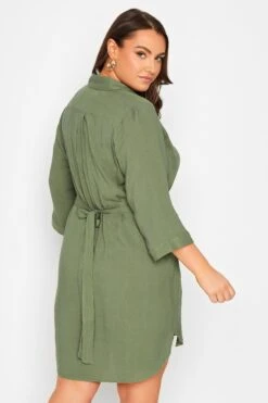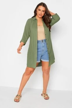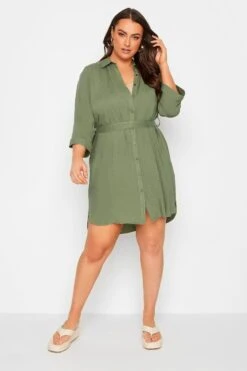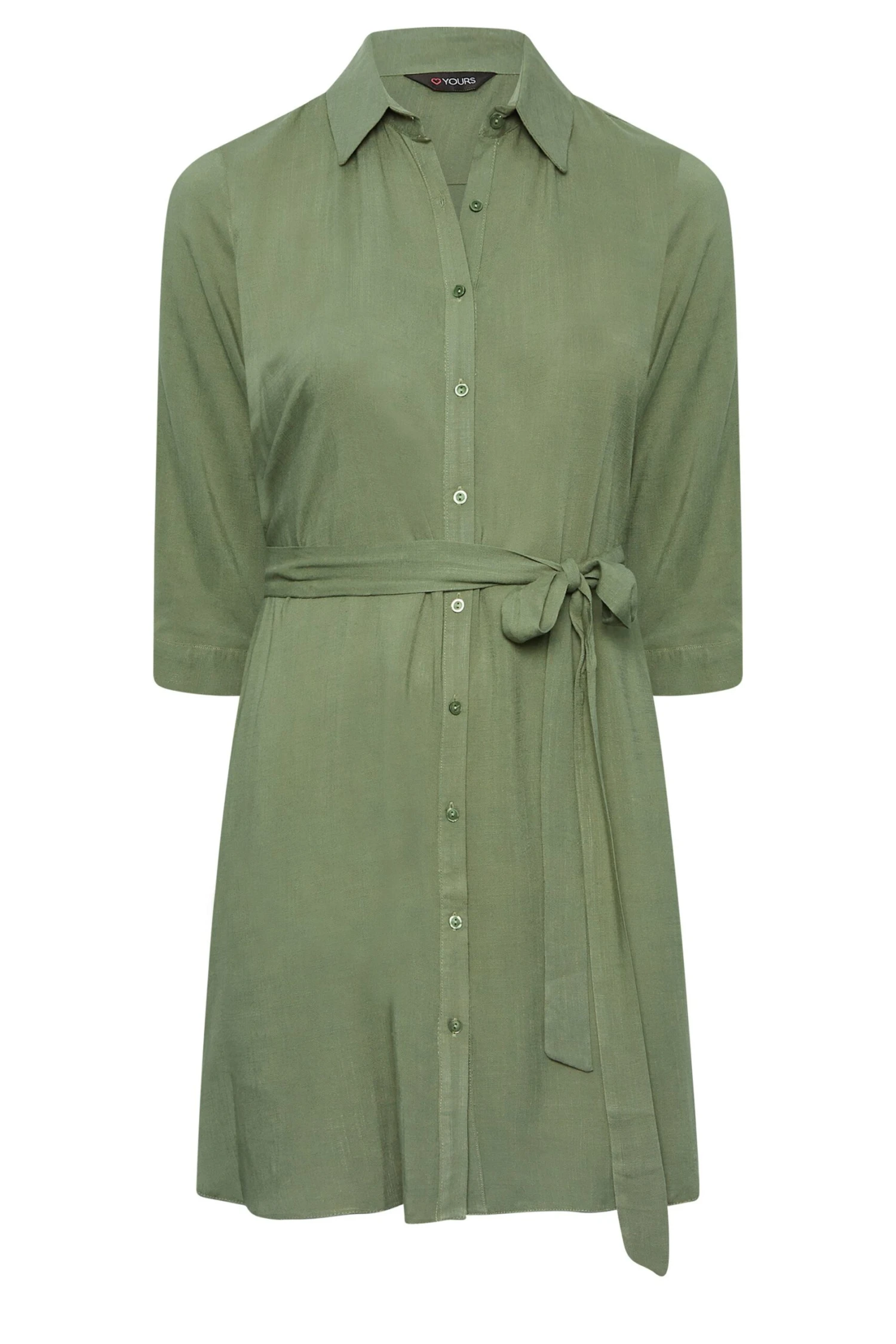 This plus size tunic shirt is a summer staple. Featuring a flattering tie waist belt and 3/4 length sleeves, it is finished with a classic collar, button fastenings, and a dipped hem. Style with shorts and trainers for a summer look you’ll wear on repeat.
