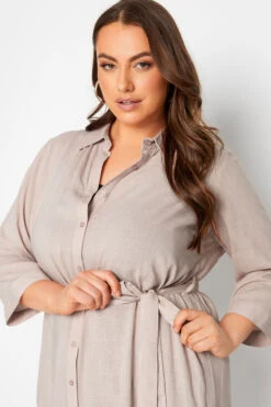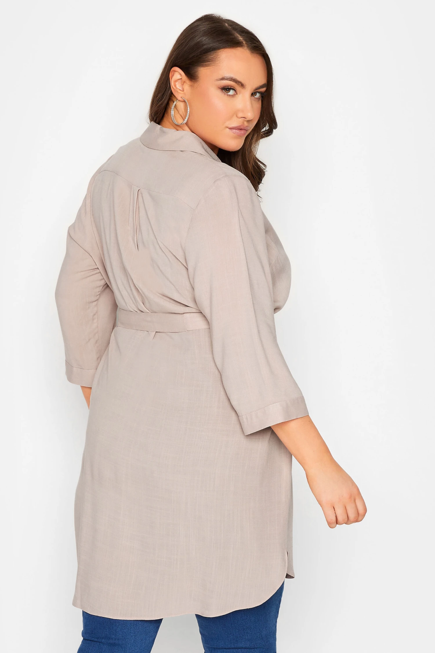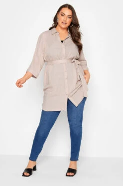 This plus size tunic shirt is a summer staple. Featuring a flattering tie waist belt and 3/4 length sleeves, it is finished with a classic collar, button fastenings, and a dipped hem. Style with shorts and trainers for a summer look you’ll wear on repeat.