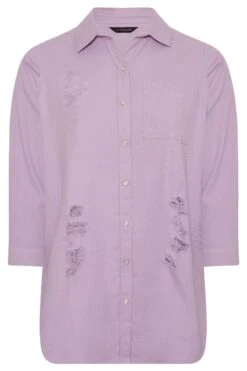 Add a pop of colour to your denim collection with this new-in shirt. Made from a soft woven fabric, this plus size denim shirt features distressed ripped details, a chest pocket and long sleeves. Layer over a t-shirt and jeans for an effortless off-duty look.