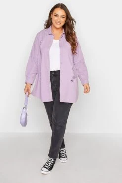 Add a pop of colour to your denim collection with this new-in shirt. Made from a soft woven fabric, this plus size denim shirt features distressed ripped details, a chest pocket and long sleeves. Layer over a t-shirt and jeans for an effortless off-duty look.