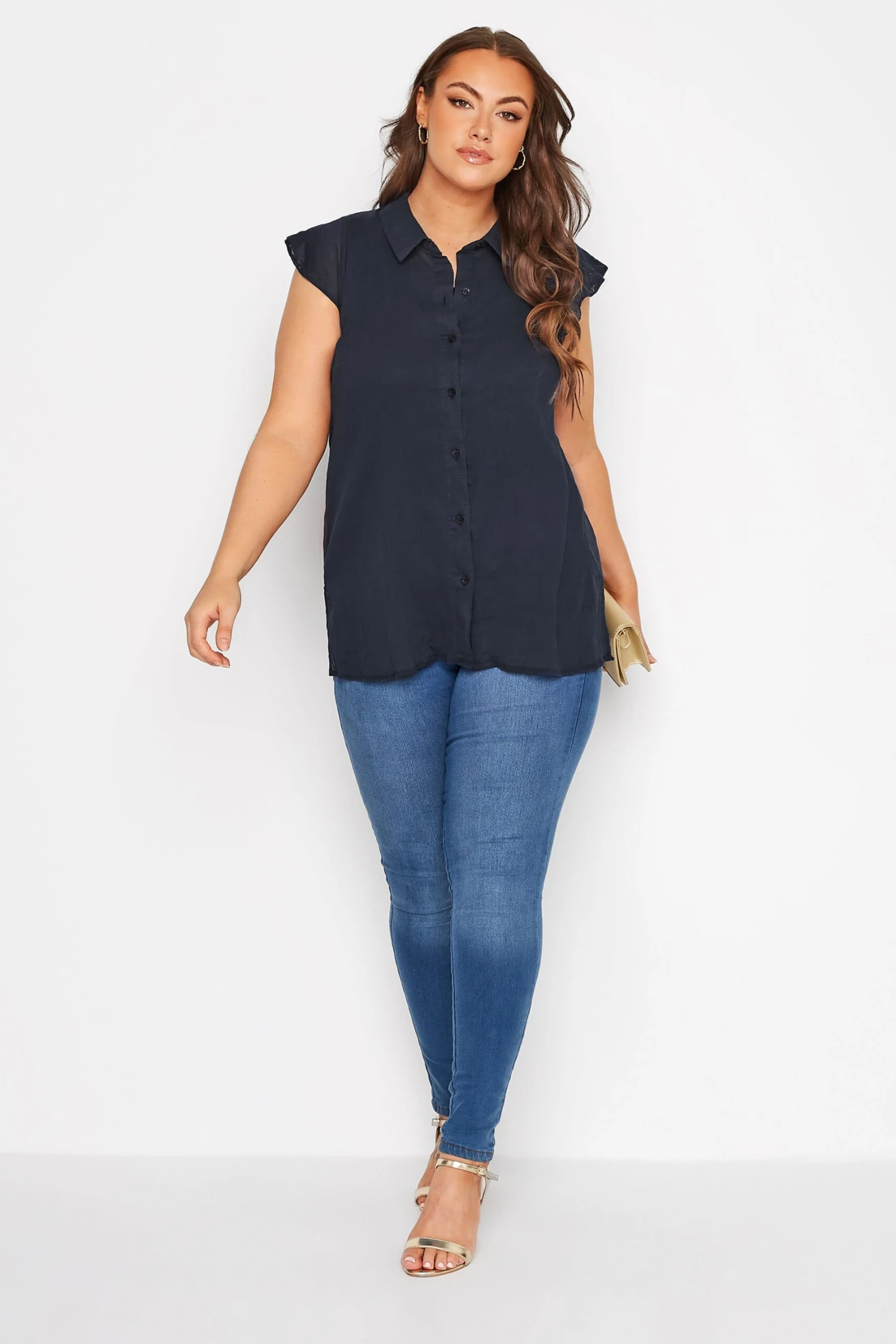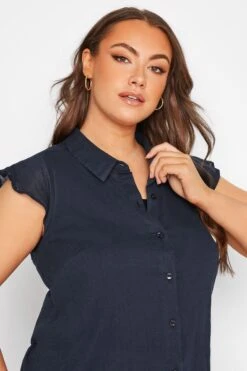 A versatile piece your wardrobe can’t live without! This plus size shirt features a dipped hem and short cap sleeves with a classic collar and button through fastenings. Wear with trousers and loafers for everyday wear, or opt for heels in the evening.