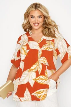 Play with prints this season with this must-have shirt. Made from a soft woven fabric, it features a leaf print with short sleeves and a v-neckline. Pair with jeans and heels for a weekend-worthy look!