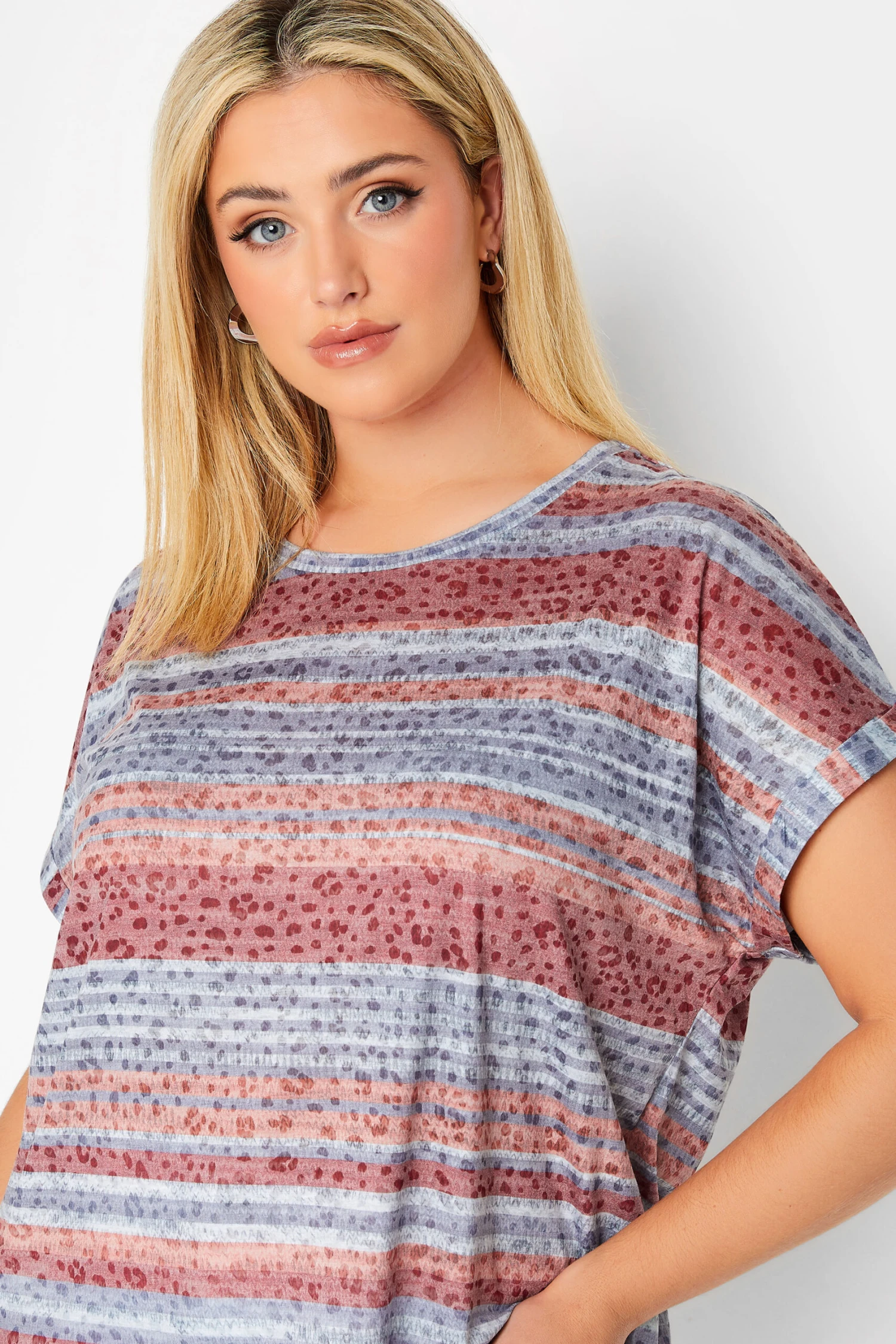 A must have tee! Made from a comfortable jersey fabric, this t-shirt features short cuffed sleeves, a scoop neckline, an animal print finished in a stripe pattern. Style with black trousers and white trainers for an easy every day look!