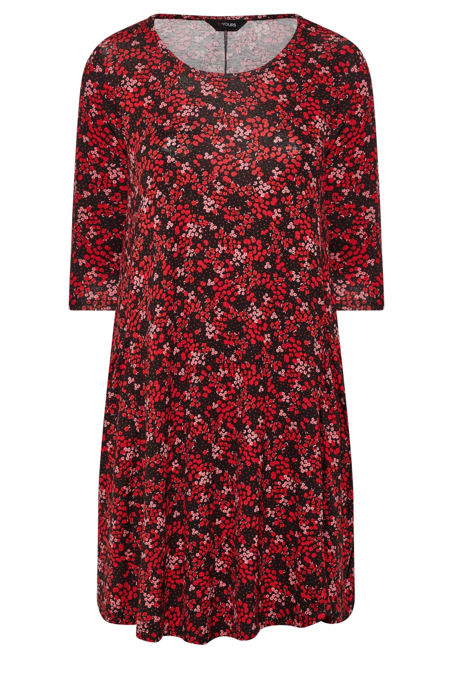 Add this pretty print to your new season wardrobe with this plus size swing dress. Made from a soft jersey fabric, it features 3/4 length sleeves, a scoop neckline and is complete in a ditsy print. Pair with boots and a leather jacket for a stylish weekend outfit.
